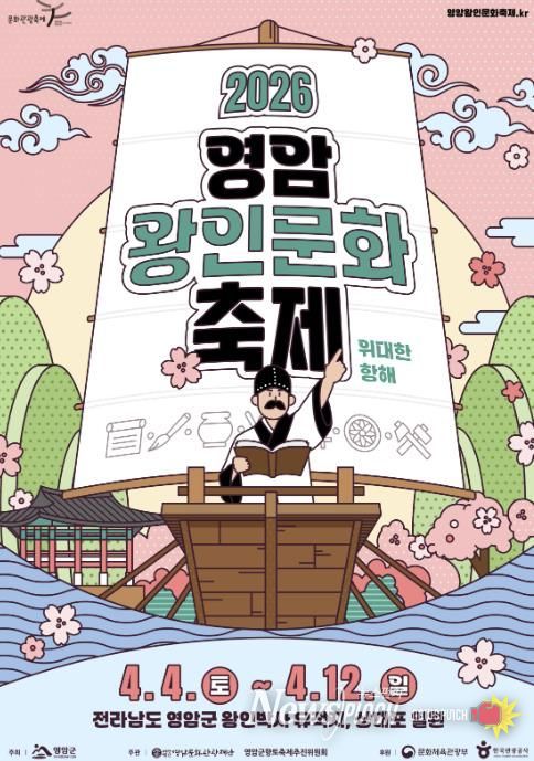 뉴스펀치 최영남 기자 | 벚꽃이 만개하는 화창한 봄을 맞아 문화관광축제인 ‘2026 영암왕인문화축제’가 오는 4월 4일부터 12일까지 왕인박사유적지 일원에서 개최된다. (재)영암문화관광재단은 올해 축제의 주제를 ‘위대한 항해’로 정하고, 전국 각지에서 방문하는 관광객들이 축제 속에서 왕인박사가 우리에게 주는 의미와 다양한 매력들을 발굴하며 벚꽃과 함께 더 아름다운 모습으로 영암의 다채로운 매력들을 널리 알릴 수 있는 축제로 운영할 계획이라고 밝혔다.