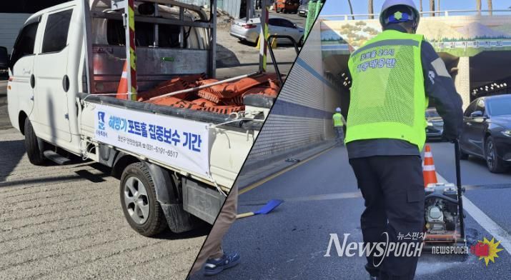 권선구 관계자는 “해빙기에는 동결·융해 반복으로 포트홀이 빈번하게 발생할 수 있는 만큼, 전담보수반을 운영해 신속하게 복구하겠다”며 “평일에는 휴먼콜센터, 야간·공휴일에도 포트홀을 발견하면 권선구청 당직실로 적극 제보해 주시길 바란다”라고 말했다.