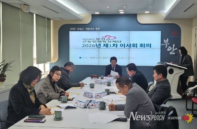뉴스펀치 정홍균 기자 | 부안군 근농인재육성재단은 지난 20일 부안군청 3층 중회의실에서 2026년 제1차 이사회를 개최하고 총 3건의 안건을 심의·의결했다고 밝혔다.