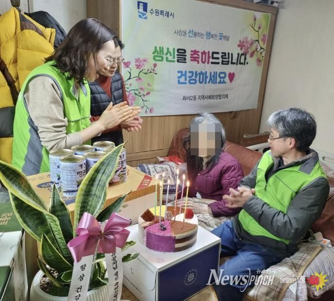 뉴스펀치 박상훈 기자 | 수원시 팔달구 화서2동 지역사회보장협의체는 지난 20일, 관내 저소득 홀몸 어르신 가정을 직접 방문해 생신을 축하 드리고 안부를 확인하는 ‘사랑을 선물하는 행복한 꽃배달(선행꽃)’ 사업을 추진했다.