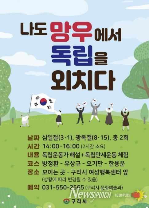 뉴스펀치 박상훈 기자 | 구리시는 오는 3월 1일 오후 2시부터 4시까지 망우산 묘역에서 ‘나도 망우에서 독립을 외치다’ 역사 체험 행사를 운영한다고 밝혔다.