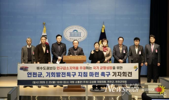 뉴스펀치 박상훈 기자 | 연천군은 23일 오전 국회 소통관에서 기자회견을 열고, ‘수도권 내 인구감소지역 및 접경지역’에 대한 기회발전특구 운영(신청) 지침을 마련할 것을 강력히 촉구했다.