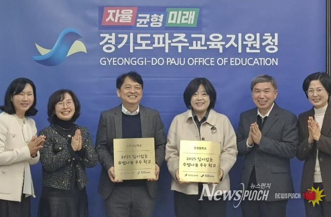 파주교육지원청은 2025학년도의 수업을 되돌아보면서 2026년 2월 20일(금), 깊이 있는 수업 나눔 실천 우수학교를 선정하여 기념 현판 수여식을 진행했다. 수여식에는 2025학년도에 일상적 수업 연구 및 지역 대표 공개 수업 등으로 깊이 있는 수업 확산에 노력한 ‘운정중학교, 심학고등학교’ 2개 학교 학교장이 참석했다. 참석자는 “2026년에도 학생 주도성을 바탕으로 한 깊이 있는 수업 실천을 위해 더욱 노력하겠다.”라고 소감을 밝혔다.