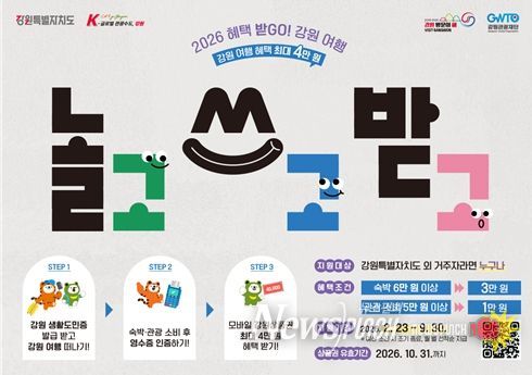 뉴스펀치 조평훈 기자 | 강원특별자치도와 강원관광재단은 관광 소비를 지역 매출로 직결시키는 환급형 캠페인‘혜택 받GO! 강원 여행’을 2월 23일부터 본격 추진한다.