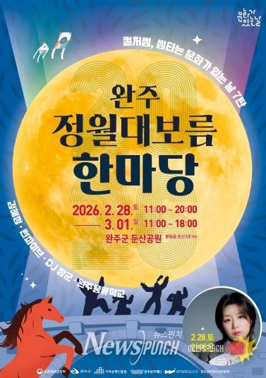 뉴스펀치 최영남 기자 | 완주문화재단(이사장 유희태)은 오는 2월28일부터 3월 1일까지 완주군 둔산공원 일원에서 2026 완주 정월대보름 한마당을 개최한다.