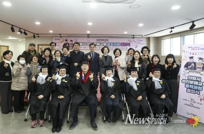 뉴스펀치 박상훈 기자 | 의왕시가 2월 23일 고천동평생학습센터에서 ‘2025학년도 성인문해교육 중학과정 제2회 졸업식’을 개최하며, 배움의 시기를 놓쳤던 어르신들에게 졸업장을 전달했다.