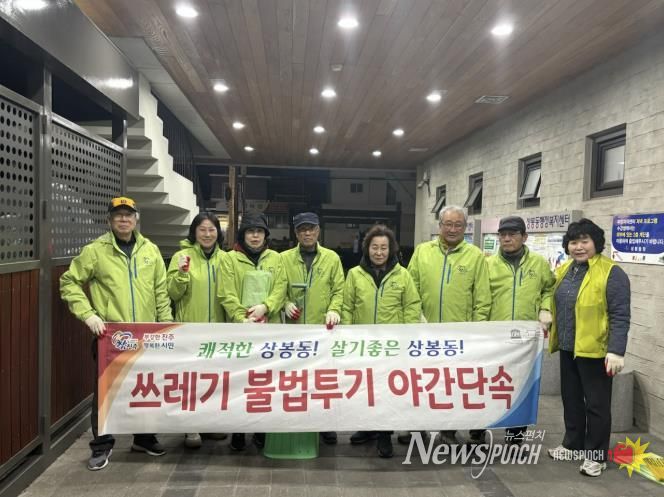 뉴스펀치 박세훈 기자 | 진주시 상봉동 시민수사대는 지난 23일, 관내 쓰레기 불법투기 근절을 위해 진주중학교 인근에서 시민수사대원 및 직원 10명이 참여해 야간단속을 실시했다.