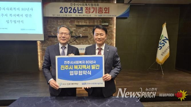 뉴스펀치 박세훈 기자 | 진주시복지재단과 진주시사회복지협의회은 23일 진주시사회복지협의회 정기총회 자리에서‘진주시 복지백서 발간’사업의 성공적인 추진을 위한 업무 협약을 체결했다.