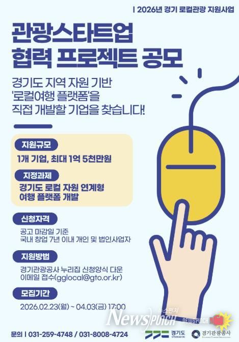 뉴스펀치 박상훈 기자 | 경기도와 경기관광공사는 '2026년 경기 관광스타트업 협력 프로젝트' 참여 기업을 공개 모집한다고 24일 밝혔다.