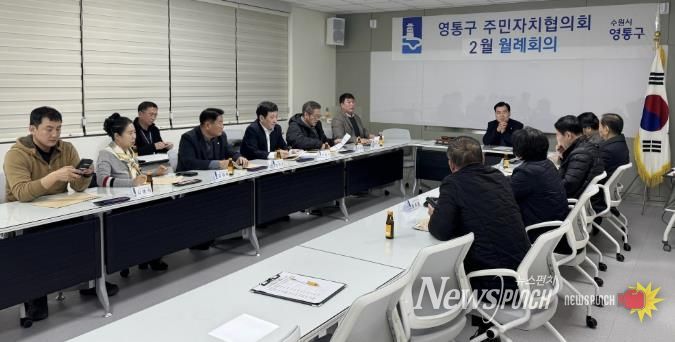 뉴스펀치 박상훈 기자 | 수원시 영통구는 지난 23일 망포1동 행정복지센터에서 영통구 주민자치협의회 2월 월례회의를 개최했다고 밝혔다. 회의에는 각 동 주민자치회장이 참석했다.