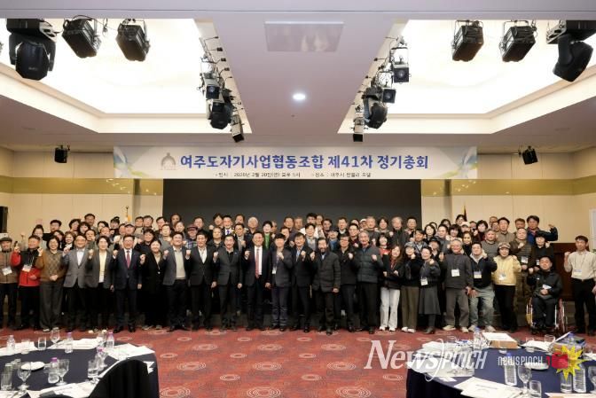 뉴스펀치 박상훈 기자 | 여주도자기사업협동조합은 지난 2월 20일 오후 5시 썬밸리호텔 세종홀에서 제41차 정기총회를 개최했다. 피재성 여주도자기사업협동조합 이사장을 포함한 조합원 80여 명이 참석한 가운데 2025년도 사업보고와 결산안을 승인하고 2026년도 사업계획과 예산안을 의결했다.