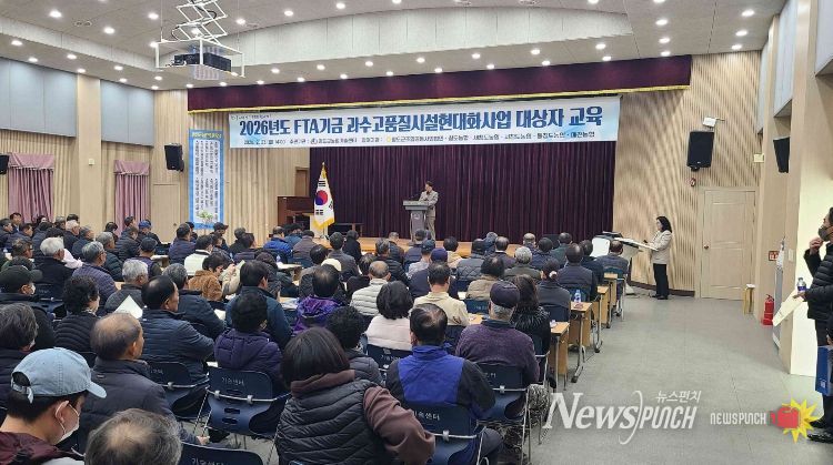 뉴스펀치 박세훈 기자 | 청도군은 지난 2월 23일 농업기술센터 3층 대회의실에서 2026년도 FTA기금 과수고품질시설현대화사업 선정농가 225명을 대상 으로 사업목적, 사업추진요령 및 유의사항에 대한 교육을 실시했다.