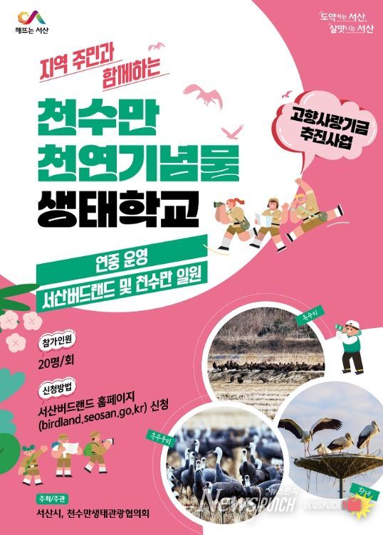 뉴스펀치 이현승 기자 | 충남 서산시는 올해 ‘지역 주민과 함께하는 천수만 천연기념물 생태학교’가 개최된다고 밝혔다.