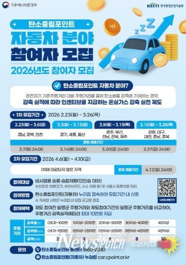 뉴스펀치 박상훈 기자 | 고양특례시는 기후위기 대응과 탄소중립 실천 문화를 확산하기 위해 ‘2026년 탄소중립포인트 자동차 분야’ 참여자를 모집한다고 밝혔다.