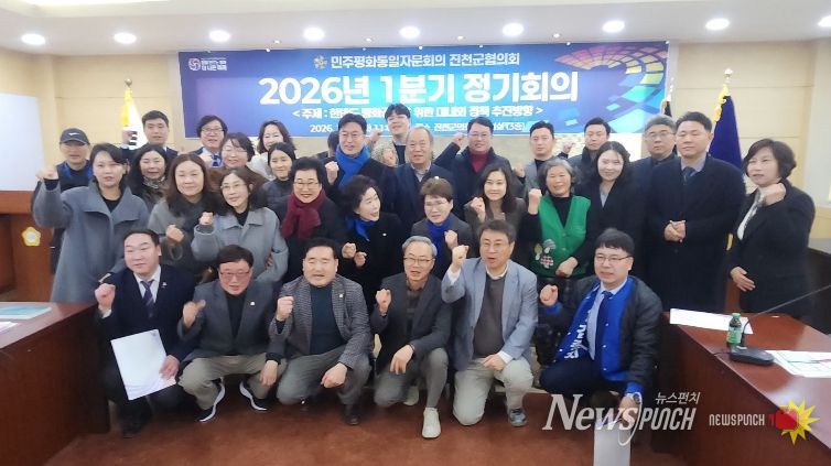 뉴스펀치 이현승 기자 | 민주평화통일자문회의 진천군협의회(협의회장 정창선)는 진천군의회 소회의실에서 ‘한반도 평화공존을 위한 대내외 정책 추진 방향'을 주제로 2026년 1차 정기회의를 개최했다고 24일 밝혔다.
