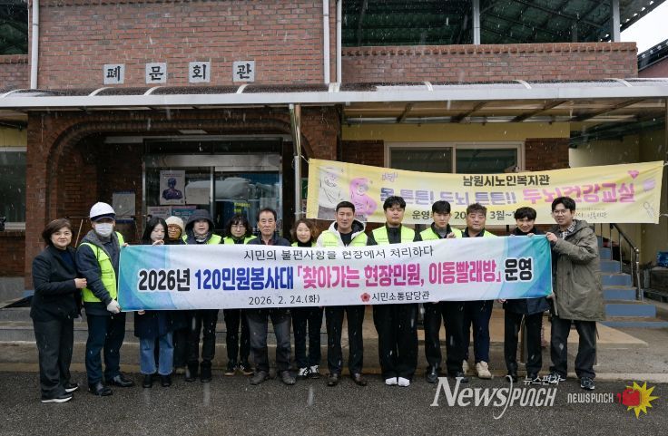 뉴스펀치 정홍균 기자 | 남원시가 시민의 생활 불편을 현장에서 신속히 해결하는 ‘120민원봉사대’ 운영을 본격적으로 시작한다. 시는 오는 2월 24일 이백면 폐문ˑ효촌마을을 시작으로 올해 모두 150회에 걸쳐 300개 마을을 순회하며 찾아가는 현장 민원 처리와 이동 빨래방 서비스를 제공할 계획이다.