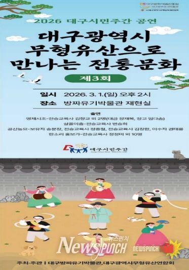 뉴스펀치 조평훈 기자 | 대구문화예술진흥원 박물관운영본부 소속 대구방짜유기박물관에서는 2026년 대구시민주간(2.21.~28.)을 맞아 3월 1일 오후 2시, 박물관 재현실에서 대구의 전통문화를 알리는 특별 공연 ‘대구광역시 무형유산으로 만나는 전통문화’를 개최한다.
