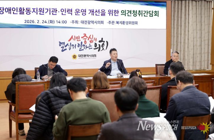 뉴스펀치 이현승 기자 | 대전광역시의회 복지환경위원회는 24일 시의회 3층 소통실에서 황경아 의원(국민의힘, 비례대표) 주재로 '장애인활동지원기관·인력 운영 개선을 위한 의견청취 간담회'를 개최했다.