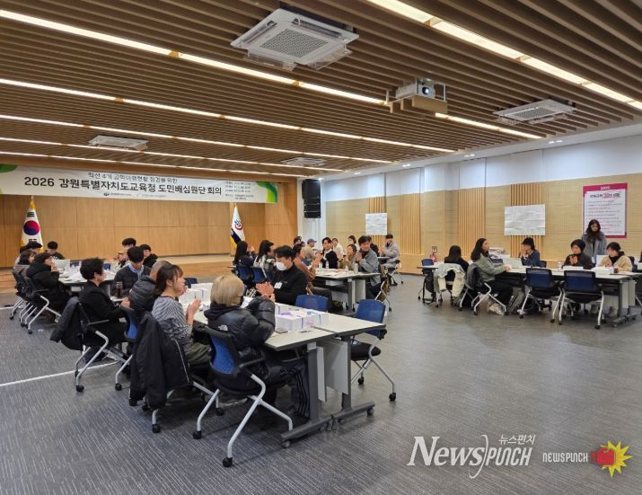 뉴스펀치 조평훈 기자 | 강원특별자치도교육청은 2월 24일 오후 1시 30분, 강원특별자치도교육청 대회의실에서 ‘2026년 교육감 공약 도민배심원단 3차 회의’를 개최했다.