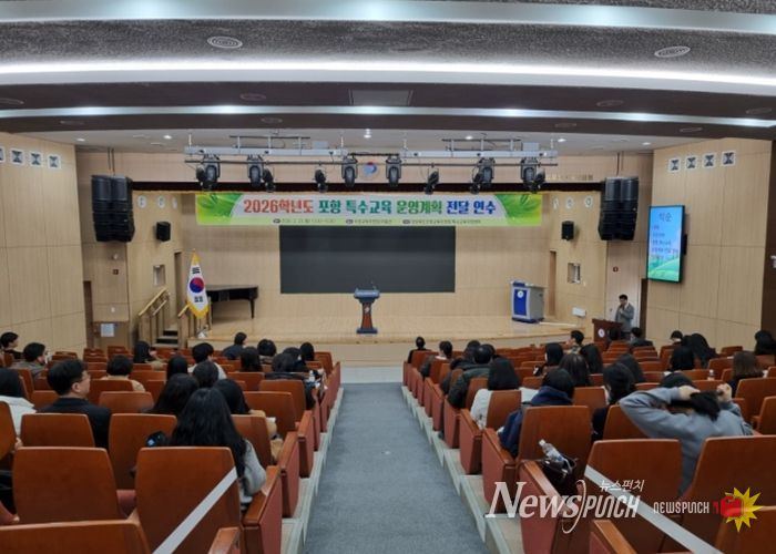 뉴스펀치 박세훈 기자 | 포항교육지원청은 2026년 2월 23일 13시 30분, 포항교육지원청 여울관에서 관내 유·초·중·고등학교 특수교육 업무 담당 교원 약 130명을 대상으로 ‘2026학년도 특수교육 운영계획 전달연수’를 실시했다.