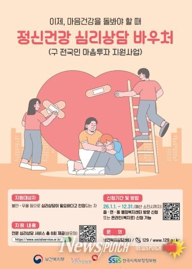 뉴스펀치 박세훈 기자 | 영광군은 우울·불안 등 정서적 어려움을 겪는 군민의 마음건강 회복과 정신건강 증진을 위해 '정신건강 심리상담 바우처 사업'을 추진하고 있다.