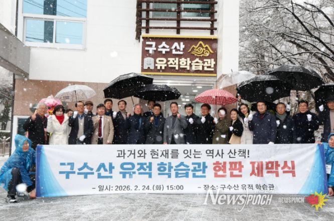 뉴스펀치 조평훈 기자 | 대구 북구청은 2월 24일, 구수산 공원에서 지역 의원, 발굴 관계자 및 주민들이 참석한 가운데 ‘구수산 유적 학습관’ 현판 제막식을 가졌다.