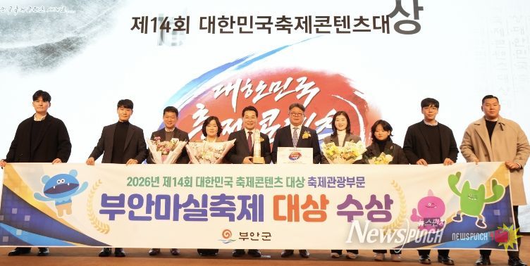 뉴스펀치 정홍균 기자 | 부안군은 24일 (사)한국축제콘텐츠협회 주최로 서울에서 열린 제14회 대한민국 축제 콘텐츠 대상 시상식에서 축제관광 부문 대상을 수상했다고 밝혔다.