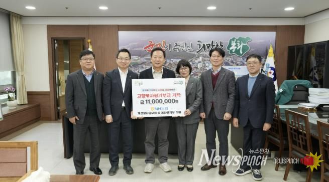 뉴스펀치 박세훈 기자 | 봉화군은 2월 24일 NH농협 재경봉화향우회 회원과 봉화군지부 직원들이 뜻을 모아 마련한 고향사랑기부금 1,100만원을 전달하며, 3년 연속 지역사회 발전과 고향사랑 실천에 동참했다고 밝혔다.