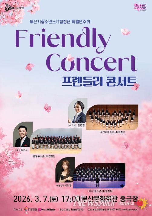 뉴스펀치 김윤걸 기자 | 부산시립소년소녀합창단이 청소년 합창단 간 교류와 우정을 나누는 특별연주회 '프렌들리 콘서트(Friendly Concert)'가 오는 3월 7일 오후 5시, 부산문화회관 중극장에서 개최된다.
