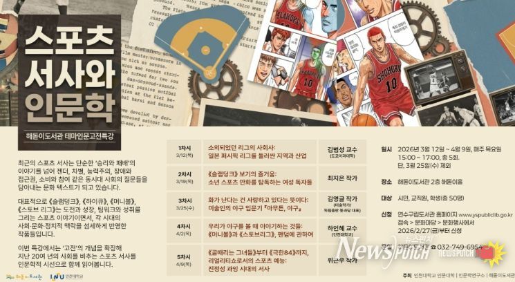 스포츠 서사에 관심이 있는 성인은 누구나 참여할 수 있으며, 신청은 27일 오후 2시부터 연수구립도서관 누리집에서 선착순으로 할 수 있다.