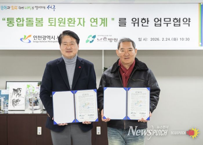 뉴스펀치 정홍균 기자 | 인천 서구는 지난 2월 24일 지역책임의료기관인 나은병원(병원장 하헌영)과 통합돌봄지원 활성화를 위한 ‘퇴원환자 지역사회 연계 업무협약(MOU)’을 체결했다고 밝혔다.