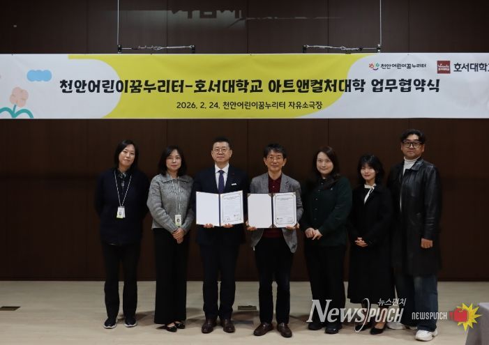 뉴스펀치 이현승 기자 | 천안어린이꿈누리터와 호서대학교 아트앤컬처대학이 아동의 문화예술 향유 기회를 확대하고, 지역 공연 활성화를 위한 협력 체계를 구축했다.