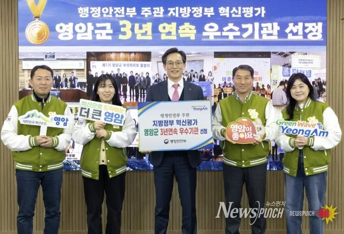 뉴스펀치 김용희 기자 | 영암군이 23일 행정안전부의 ‘2025년 지방정부 혁신평가’에서 최고 등급인 우수기관으로 선정돼, 3년 연속 혁신 지자체에 이름을 올렸다.