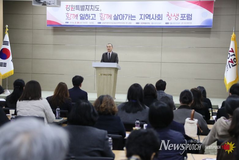 뉴스펀치 조평훈 기자 | 강원특별자치도는 2월 25일 강원특별자치도여성가족연구원 1층 강당에서 강원특별자치도와 강원도민일보가 공동 주최하고, 강원특별자치도여성가족연구원과 강원도민일보가 주관하는 '강원특별자치도, 함께 일하고 함께 살아가는 지역사회 상생포럼'을 개최했다.