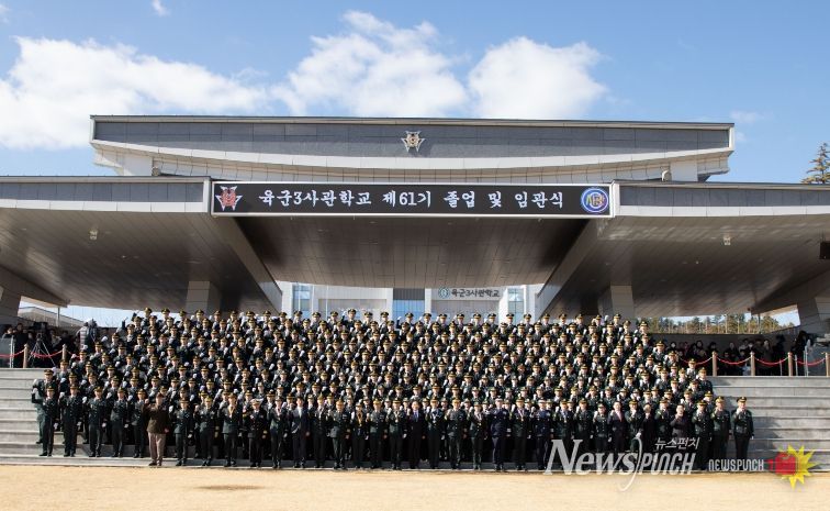 뉴스펀치 박세훈 기자 | 육군3사관학교는 25일 교내 충성연병장에서 이두희 국방부차관 주관으로 제61기 졸업 및 임관식을 거행했다. 행사에는 가족과 친지, 총동문회, 학교 관계자 등 3천여 명이 참석해 신임장교들의 임관을 축하하며 격려했다.