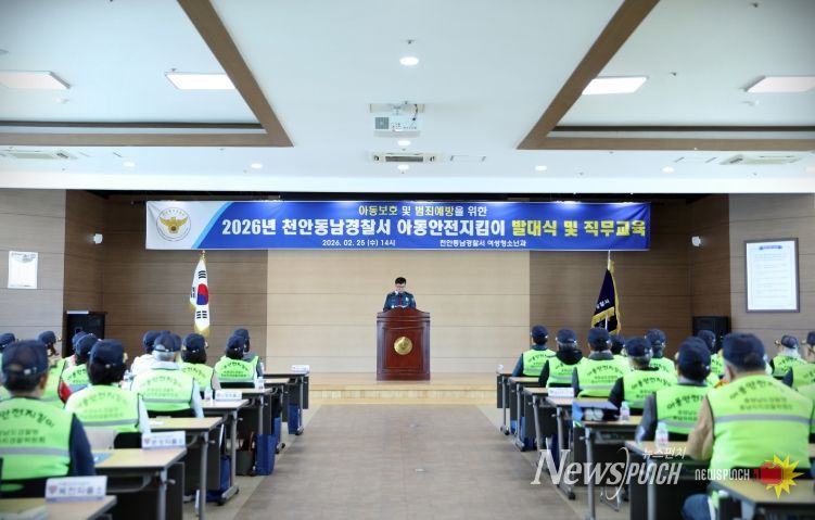 뉴스펀치 이현승 기자 | 천안동남경찰서(서장 이민수)는 2026. 2. 25., 14:00경 천안동남경찰서 5층 대회의실에서 2026년 아동안전지킴이로 선발된 56명의 아동안전 지킴이들이 참석한 가운데 아동 보호 및 범죄 예방을 위한 '2026년 아동안전지킴이 발대식'을 개최했다.