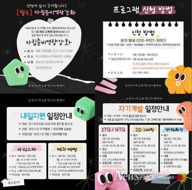 프로그램 신청과 관련한 기타 문의 사항은 남양주시 학교밖청소년지원센터로 문의하면 안내 받을 수 있다.