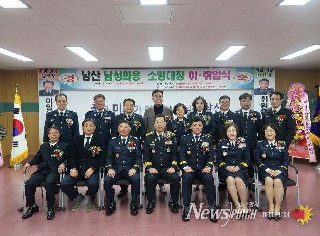 뉴스펀치 박세훈 기자 | 경산소방서는 2월 25일 저녁 남산면 행정복지센터에서 남산남성의용소방대장 이·취임식을 개최했다. 이날 행사에는 의용소방대원과 내외빈, 소방공무원 등 약 60명이 참석해 자리를 빛냈다.