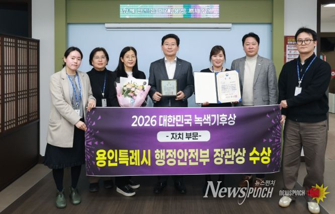 뉴스펀치 박상훈 기자 | 용인특례시는 25일 국회기후변화포럼이 주최하는 ‘2026 대한민국 녹색기후상 자치 부문’에서 행정안전부장관상을 수상했다고 26일 밝혔다.