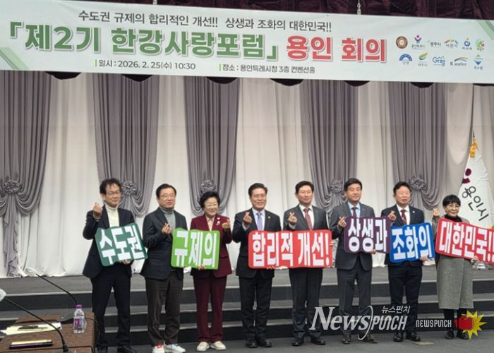 뉴스펀치 박상훈 기자 | 이현재 경기 하남시장이 25일 오전 용인특례시청 컨벤션홀에서 열린 '제2기 한강사랑포럼' 제2차 회의에 참석해 수도권 규제 개선을 위한 지자체 간 상생 협력 의지를 강력히 표명했다.
