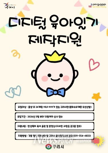 백경현 구리시장은 “저출산이라는 국가적 과제를 극복하기 위해서는 작은 실천이 모여 큰 변화를 만든다고 생각한다”라며 “이번 디지털 육아일기 제작 과정을 통해 탄생의 기쁨을 가족이 함께 나누고, 더욱 화목한 가정이 늘어나길 기대한다”라고 밝혔다.