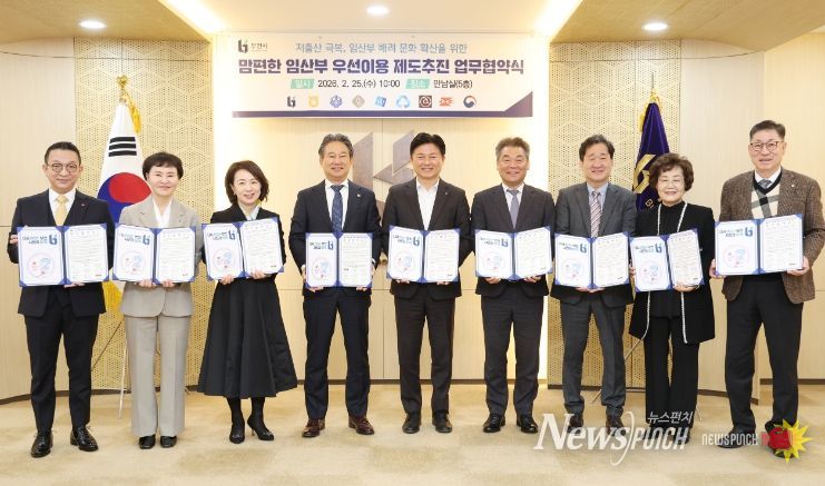 뉴스펀치 박상훈 기자 | 부천시는 지난 25일 시청 만남실에서 ‘맘편한 임산부 우선이용 제도’ 업무협약식을 열고, 저출산 대응과 임산부 안전 및 편의 증진을 위한 협력체계를 구축했다. 이번 협약은 시민 일상 속에서 임산부가 우선 이용할 수 있는 환경을 확산하기 위해 마련됐다.