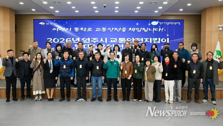 뉴스펀치 박세훈 기자 | 영주시는 26일 시청 강당에서 ‘2026년도 영주시 교통안전지킴이 발대식’을 개최하고, 초등학교 개학 시즌에 맞춰 지킴이 활동을 재개했다.