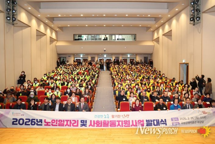 뉴스펀치 박세훈 기자 | 김해시는 26일 국립김해박물관 대강당에서 노인일자리 참여자 등 230여 명이 참석한 가운데 ‘2026년 노인일자리사업 발대식’을 개최했다.