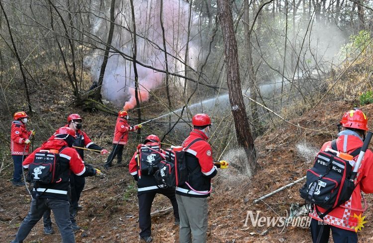 뉴스펀치 최영남 기자 | 광주광역시 서구는 산불 발생 시 신속한 초기 진화와 인명 보호를 위해 현장 대응 훈련과 장비 확충 등 실전형 대응체계를 강화하고 있다. 서구는 26일 오전 서창동 학산사 일원에서 산불 진화 모의훈련을 실시했다.