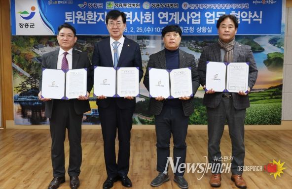 뉴스펀치 김용희 기자 | 장흥군은 지난 25일 군청 상황실에서 퇴원환자의 지역사회 안정적 복귀를 지원하기 위해 장흥종합병원, 장흥우리병원, 장흥통합의료병원과 '퇴원환자 지역사회 연계사업' 업무협약을 체결했다고 밝혔다.