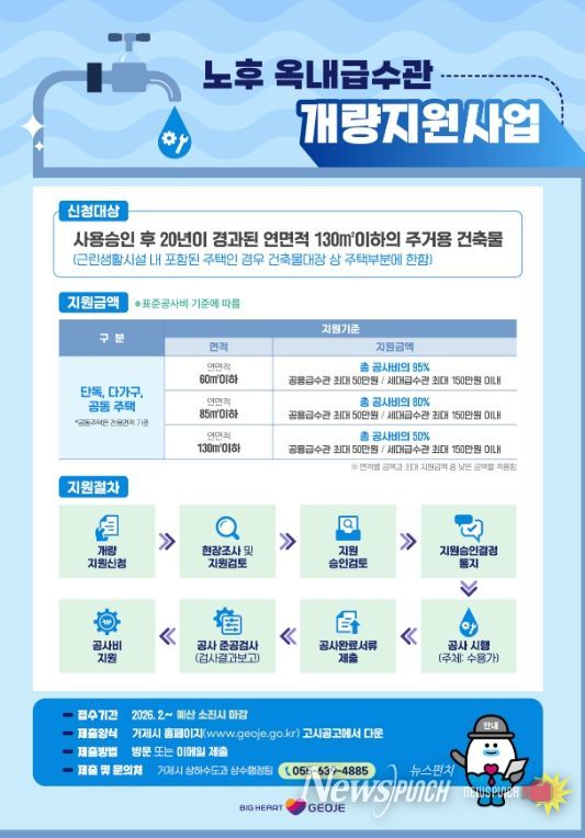뉴스펀치 박세훈 기자 | 거제시는 깨끗하고 안정적인 수돗물 공급을 위해 “노후 옥내급수관 개량지원사업”을 시행한다고 밝혔다.