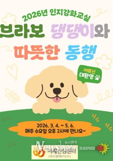 뉴스펀치 박상훈 기자 | 고양특례시 일산동구보건소 치매안심센터는 중앙치매센터에서 개발한 ‘BRABO’ 인지훈련 프로그램과 동물교감치료를 적용한 ‘브라보 댕댕이와 따뜻한 동행’ 프로그램의 참가자를 모집한다고 26일 밝혔다.