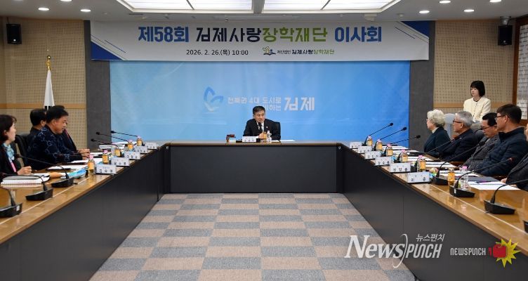 뉴스펀치 정홍균 기자 | 김제시는 재단법인 김제사랑장학재단(이사장 정성주)이 26일 시청 2층 상황실에서 임원 12명이 참석한 가운데 제58회 정기이사회를 개최했다고 밝혔다.