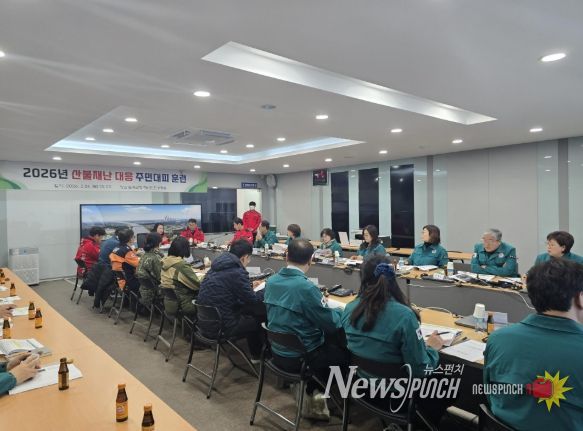 뉴스펀치 박세훈 기자 | 칠곡군은 26일 군청 재난안전상황실에서 산불재난 대응 주민대피 훈련을 실시했다.
